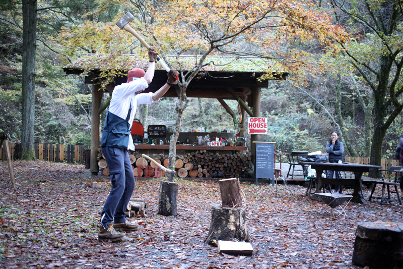 テントの展示販売会や、薪割り・焚き火体験などのイベント。