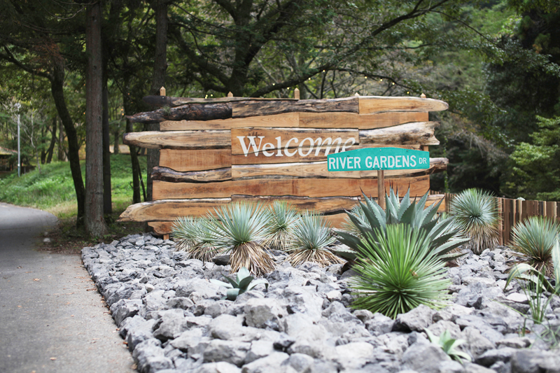 管理棟、ロックガーデン、ビラサイト、テントサイト、バーなどのデコレーション、レイアウト。